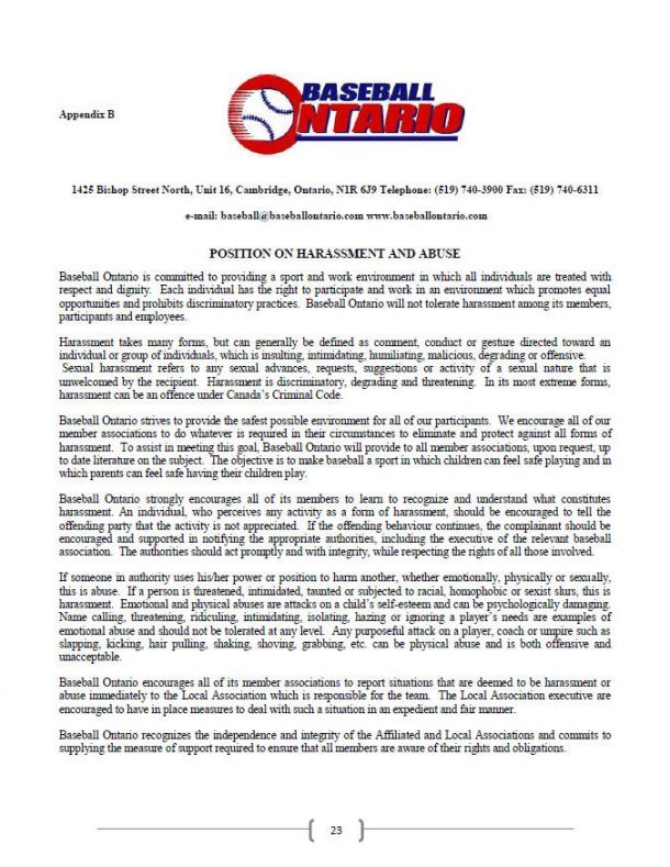 From the Port Hope & District Minor Baseball Association Policies and Procedures